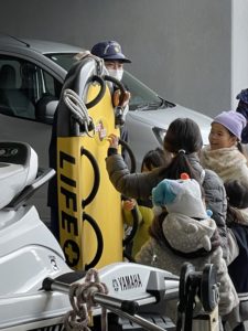 湘南海上保安署は江の島ヨットハーバーに隣接しています。「地元なのにどこにあるのかすら知らなかった」という親子さんと、初めて尽くしの探検がスタートです。