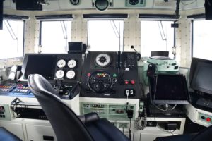 計器が並ぶ操舵室